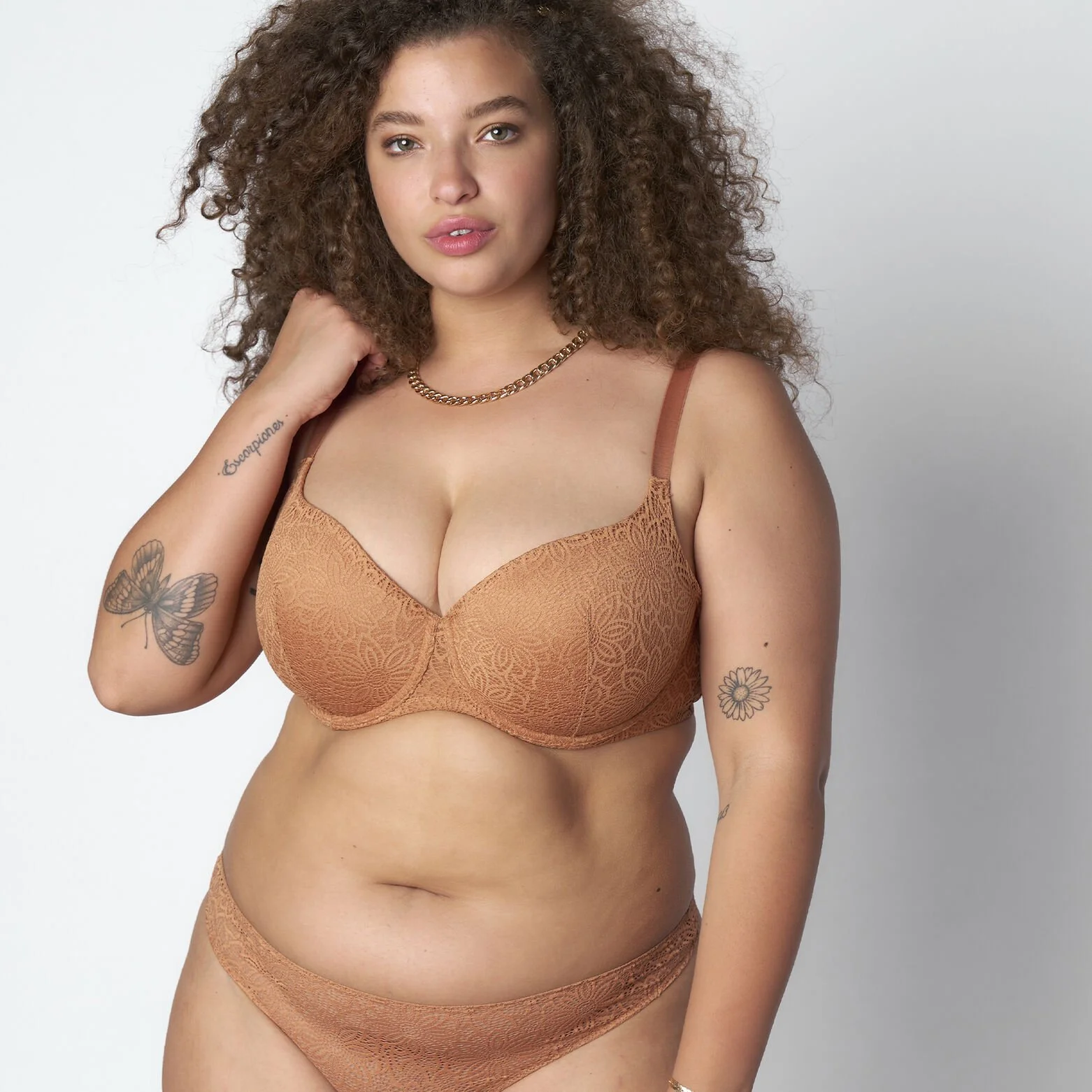– dentelle florale coloris caramel