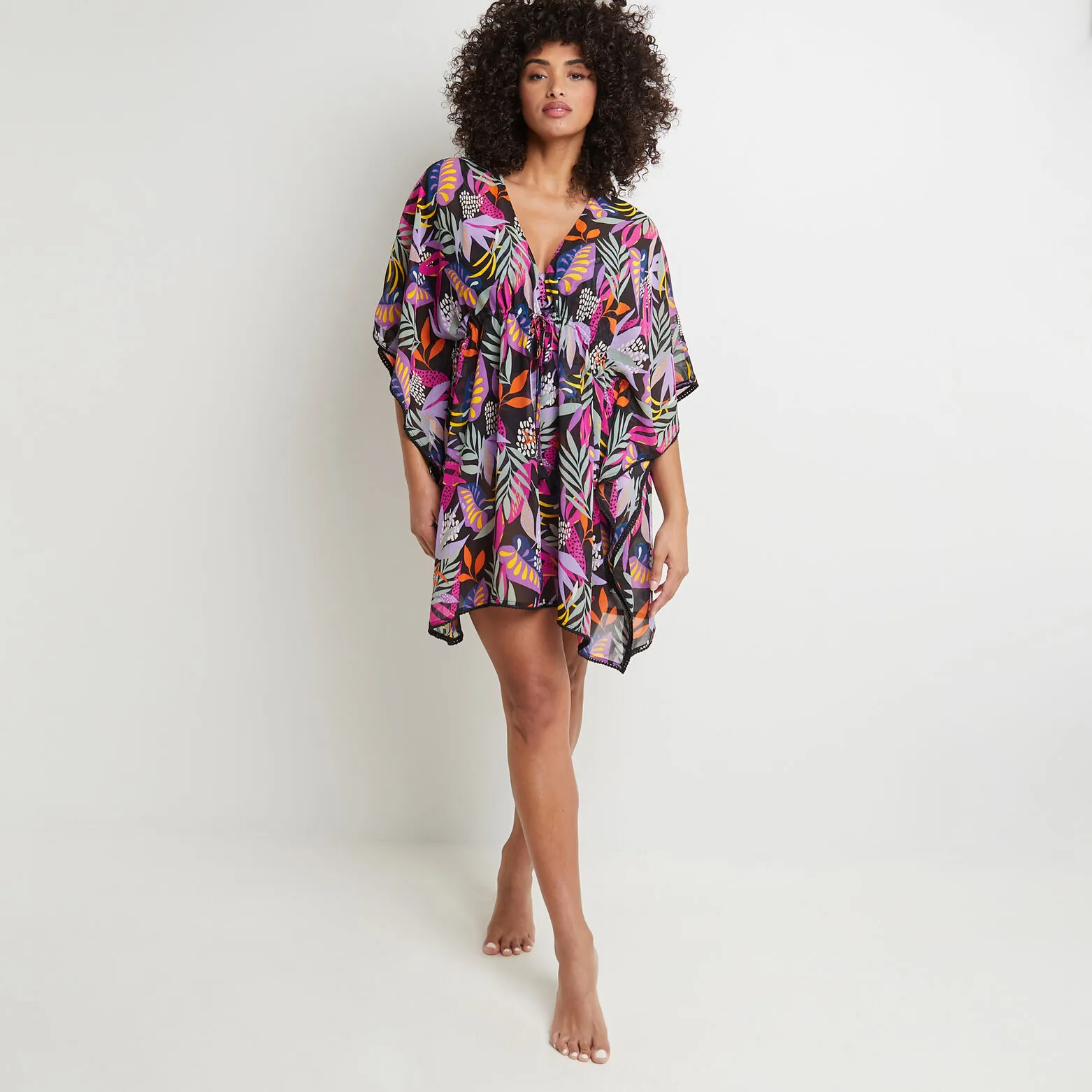« Un motif coloré, foisonnant de motifs végétaux joyeusement stylisés, s’épanouit sur la ligne de bain LAVANDE. Vous y trouverez toutes les formes de maillots : plus ou moins échancrés ou couvrants, pour toutes les morphologies, et même de jolis paréo et tunique assortis. »
