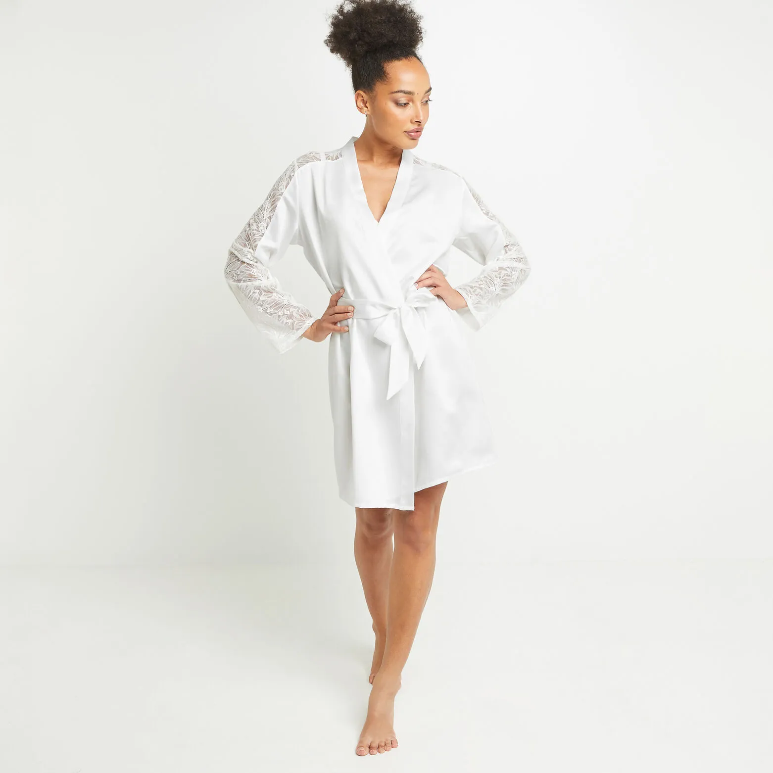 « Une ligne de lingerie couture, pensée pour sublimer les moments d’exception : votre mariage, une journée ou une soirée inoubliable… Conçue en dentelle ultra fine, féminine et délicate, ses motifs floraux magnifient vos courbes tout en légèreté. Quelques détails satinés apportent une petite touche graphique très actuelle. »